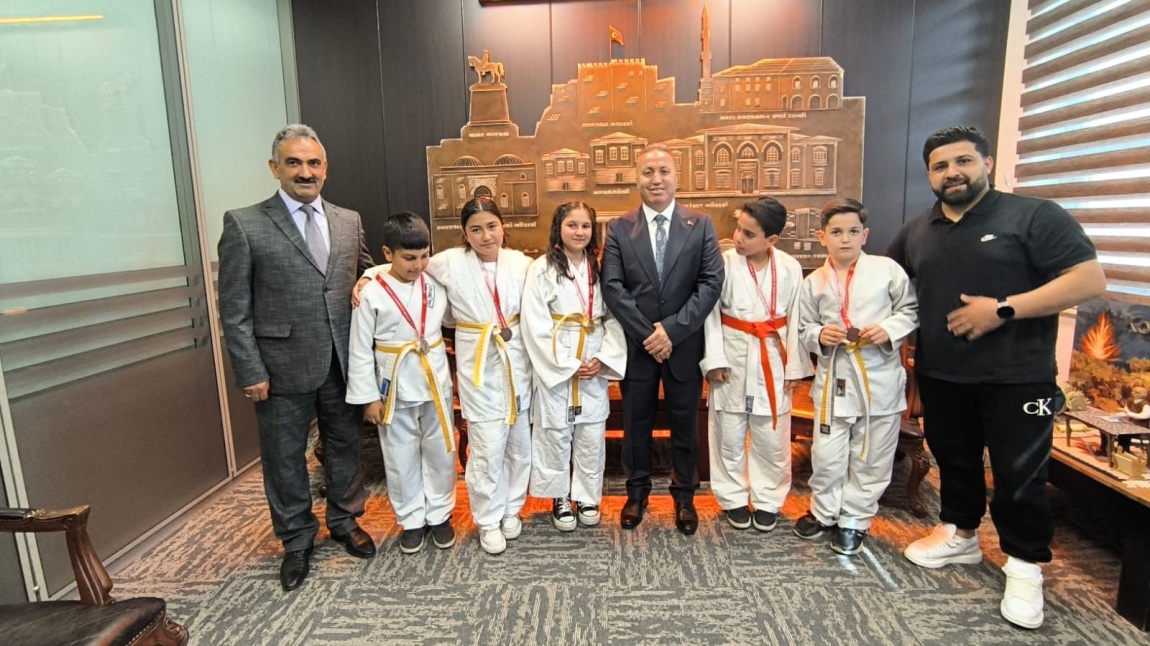 Minikler Judo müsabakalarında derece alan öğrencilerimiz, Okul Müdürümüz ve kendilerini yetiştiren Nidai Hoca ile birlikte İlçe Milli Eğitim Müdürümüzü ziyaret ettiler.